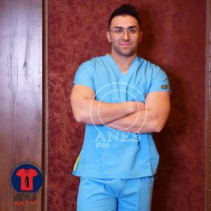 اسکراب جراحی یقه دار که نوعی رو پوش پزشکی است و در بیمارستان ها و مطب ها توسط پزشکان استفاده می شود. این اسکراب ها در سه رنگ سفید و آبی و سبز تولید می شوند. اس